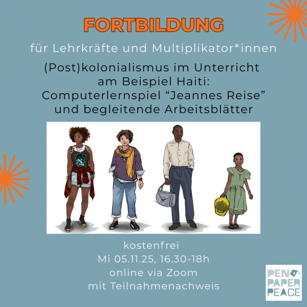 Am Mittwoch, den 05. November von 16.30-18h, bieten wir eine kostenfreie digitale Fortbildung für Lehrkräfte und Multiplikator*innen zum Thema “(Post)Kolonialismus…